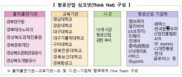 항공산업 싱크넷(Think-net)은 경북의 항공·물류산업을 육성하고 경쟁력을 강화하기 위해 도내 교육기관, 출자출연기관, 글로벌 항공·물류 기업체, 시군 원팀으로 구성된 정책 네트워크 조직이다.