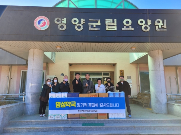 영양 명성약국(대표 이자영)은 영양군립요양원 입소 어르신들을 위해 3년 전부터 현재까지 매월 후원금 및 물품(1500만원 상당)을 기부해 오고 있다. 명성약국은 지역사회 건강지킴이 역할 뿐 아니라 영양군 인재육성장학금 기탁 등 지역사회 공헌 활동 및 어려운 이웃을 위한 나눔문화 확산에 적극 동참하고 있다.