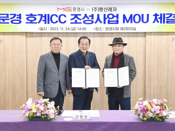 시에 따르면 시는 지난 24일 시청 제2회의실에서 신현국 문경시장, 황재용 문경시의회의장, 의원, ㈜평산레저 신상조 대표이사 등 관계자들이 참석한 가운데 문경 호계CC 조성사업의 원활한 사업 추진을 위한 양자간 투자양해각서(MOU)를 체결했다.