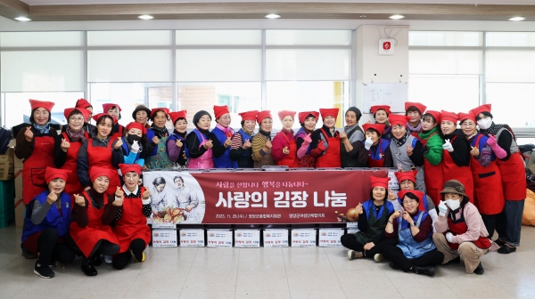 매년 동절기 김장 나눔으로 이웃사랑을 실천해 오고 있는 영양군 여성단체협의회는 이번 행사를 위해 회원 30여 명이 추운 날씨에도 불구하고 재료 손질부터 김장 버무리기와 포장까지 함께하며 이웃사랑 실천에 마음을 모았다.