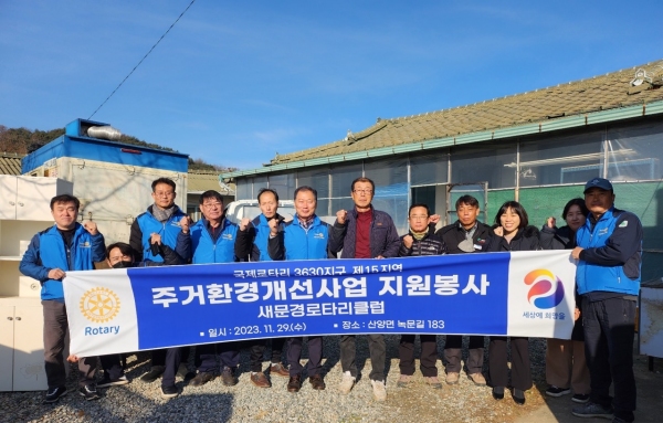 새문경로타리클럽(회장 황규진) 회원 10여명은 지난달 29일 지역 내 주거취약가구를 방문해 씽크대 교체, 화장실 수리 등 주택수리 봉사활동를 실시해 훈훈함을 전했다. 신승식 기자 hummel0887@naver.com 다른기사 보기 저작권자 © 대경일보 무단전재 및 재배포 금지 당신만 안 본 뉴스 李대통령 “성과는 충분”… 재계 “국내 투자 확대하겠다” 신천지자원봉사단 대구지부, 대명역·관문시장 환경정화활동 실시 [부서탐방] 지역발전 대동맥...사통 팔달 교통망 확충 앞장 ‘구미시 도로 철도과’ 튀르키예서 독일인 일가족 숨져… 길거리 음식인가, 호텔 오염인가 [단독] 수능 끝났는데도 1시간가량 ‘대기’… 포항 두호고 수험생들 불만 ‘AI 버블’ 경계·美 금리 불확실성… 코스피 4000선 무너졌다 유재춘 이사장, 국회에 새마을금고 규제 완화 건의 李대통령 “성과는 충분”… 재계 “국내 투자 확대하겠다” 댓글삭제 삭제한 댓글은 다시 복구할 수 없습니다. 그래도 삭제하시겠습니까? 비밀번호 닫기 기사 댓글 0 댓글 접기 로그인 후 이용 가능합니다. 댓글 내용입력 비회원 로그인 이름 비밀번호 댓글 내용입력 댓글쓰기 계정을 선택하시면 로그인·계정인증을 통해 댓글을 남기실 수 있습니다. 회원 로그인 비회원 글쓰기 이름 비밀번호 자동등록방지 로그인 옵션 창닫기 주요기사 [이철우 칼럼] 행복을 유예하지 마라 [역사탐방] 일본서 꽃 피운 조선의 음식문화 해병특검, 공수처장·차장 기소··· 국회 위증 사건 방치 혐의 [속보] '6000만원 수수 혐의' 노웅래 전 의원 1심 무죄 與, 대미투자특별법 발의··· 美 관세 11월1일 소급 적용 與, 퇴직 대법관 수임 제한·법원행정처 폐지 추진… 법원 “사법권 침해” 반발