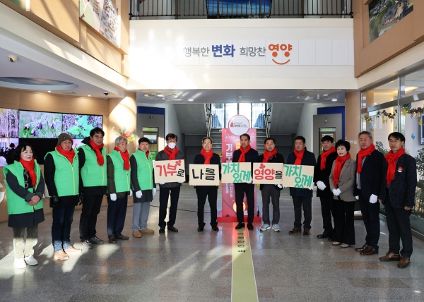 오도창 영양군수는 “경기는 어렵지만, 더 어려운 이웃을 위한 나눔이 절실한 때이다”라며, 군민들의 온기와 나눔으로 사랑의 온도탑이 100도까지 따뜻하게 올라가길 바란다”라고 전했다.
