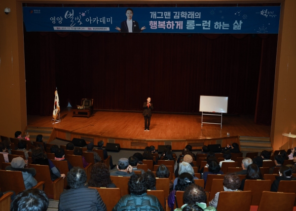 오도창 영양군수는 “오늘 강연으로 행복한 삶의 진정한 의미를 찾고 자신의 삶을 바라보는 계기가 되기를 바란다”라며 “내년에도 군민들이 배우고 힐링할 수 있는 다양한 강연을 자주 마련하겠다”라고 전했다.
