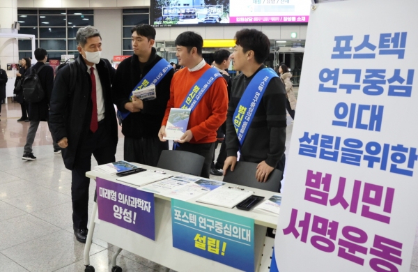 또한 KTX 역사와 시외버스터미널에도 서명 부스를 설치해 지역을 왕래하는 이용객들에게도 포스텍 연구중심의대 설립의 당위성을 설명하며 공감대 형성을 위해 노력해 왔다.
