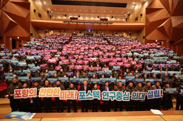 포항시와 기관·사회단체 등이 개최하는 연말 각종 행사에는 ‘포스텍 연구중심의대 설립’이 적힌 피켓을 들고 구호를 외치는 결의 퍼포먼스가 이어졌다. 어김없이 서명 부스가 차려져 시민들이 서명운동에 자발적으로 동참하는 움직임을 보였다.