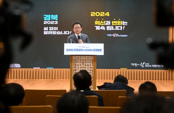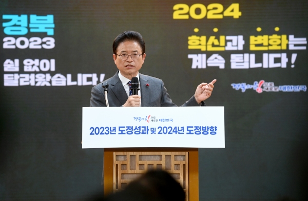 이철우 도지사는 19일 경북도청 다목적홀에서 출입기자들에게 ‘23년 성과와 24년 도정운영방향’에 대해 설명하는 시간을 가졌다.