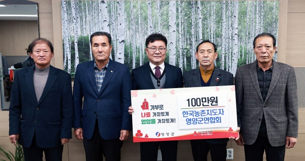 ▲ 영양군 제공 한국농촌지도자영양군연합회는 지난달 28일 영양군청을 방문해 100만원의 성금을 기탁하며 불우이웃 돕기에 동참했다. 전달식에 참석한 한국농촌지도자영양군연합회 권재현 회장은 “불우이웃돕기를 위해 회원들의 작은 정성을 모아 어려운 현실에 직면한 소외계층에게 도움이 됐으면 좋겠다는 취지로 성금을 기탁하게 됐다.