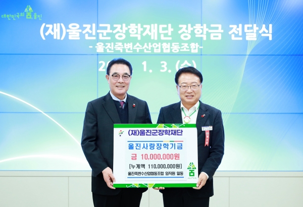 조학형 죽변수협 조합장은“우리 직원 모두가 힘을 합하여 모금한 금액으로 지역 교육사업에 이바지 할 수 있어 기쁘다”며 “앞으로도 여건이 허락되는 한 울진 인재양성을 위해 장학기금을 꾸준히 기탁하겠다”며 울진군 장학재단 기금 조성에 적극 동참할 의사를 밝혔다.
