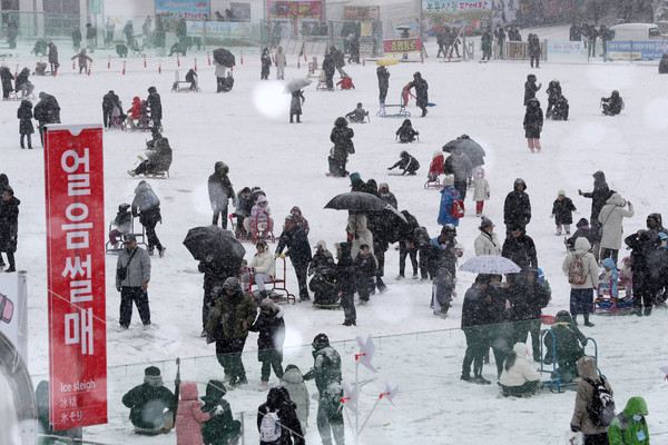 올해 두 번째 일요일인 14일 전국 대부분의 지역에 비나 눈이 오는 등 다소 흐린 날씨를 보인 가운데 겨울 축제장은 관광객으로 북적였다.