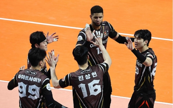 선두를 질주하던 우리카드가 4연패에 빠진 데 반해 OK금융그룹이 5연승을 질주하고 4위로 올라서면서 남자부 판도는 혼미해졌다.