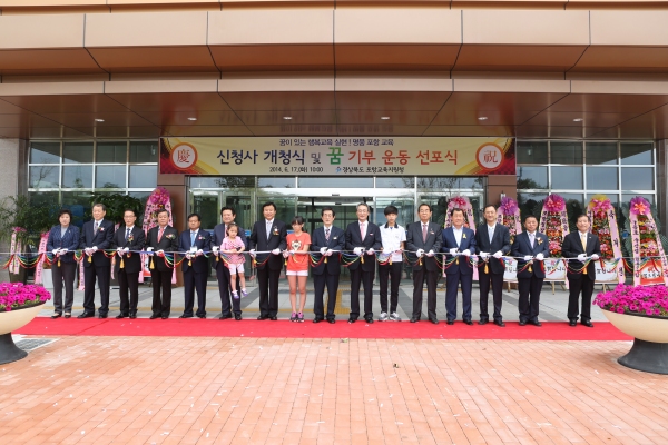한편 포항교육청은 이날 신청사 개청식과 함께 꿈 기부 운동 선포식도 함께 진행해 눈길을 끌었다. 꿈 기부 운동은 창의적인 인재육성을 위해 지역사회의 기업, 기관, 단체, 개인이 인적‧물적 인프라를 학교 교육에 활용할 수 있도록 제공하는 운동으로 학생들에게 좀 더 다양하고 수준 높은 학교 밖 교육 기회를 체험하도록 하는데 의의를 두고 있다.