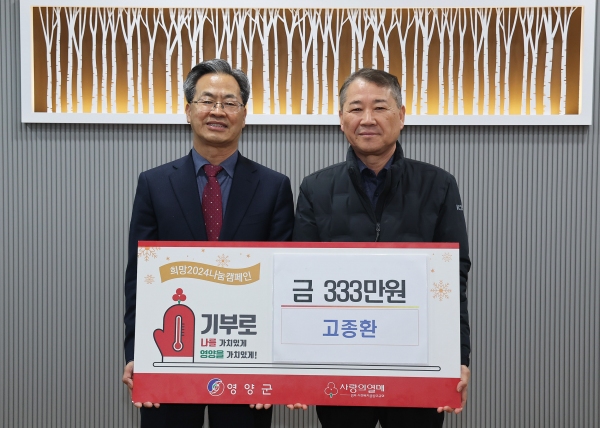 이날 영양군 입암면 고종환씨도 영양군을 방문해 성금을 전달했다. 고종환씨는 결혼 33주년을 맞아 배우자와 함께 의미 있는 나눔활동에 동참하고자 성금 3백33만3000원을 기부했다.