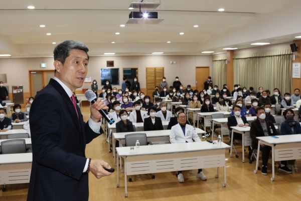 이강덕 포항시장은 지난 15일 포항의료원 대강당에서 포항의료원 직원 200여 명을 대상으로 ‘2024년 시정 운영 방향과 지역의료 혁신 방안’을 주제로 특강을 펼쳤다.