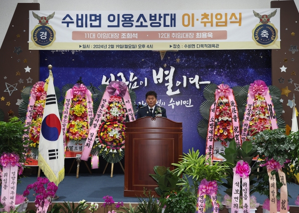 최용욱 신임 의용소방대장은 ‘산불, 주택화재와 같은 지역에 각종 사고가 발생할 때마다 사고 현장에서 솔선수범해 주시고, 후배 의용소방대원들을 격려하시며 잘 이끌어 주신 조희석 의용소방대장의 뜻을 이어받아서 앞으로도 지역의 안전을 위해 앞장서는 수비전담 의용소방대가 될 수 있도록 최선을 다하겠다’는 의지를 밝혔다.