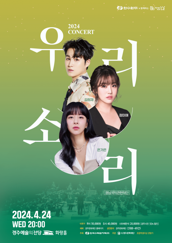 이 공연은 오는 11일 오전 10시 티켓 오픈으로 경주문화재단 홈페이지에서 예매할 수 있다. 티켓가는 R석 5만원, S석 4만원으로 경주시민과 경주소재 학교 재학생 및 재직자는 해당 증빙자료를 제시하면 50%할인 혜택을 받을 수 있다.