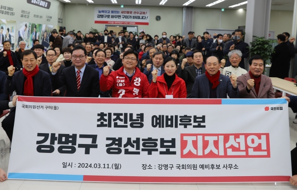 또 "본선에서 민주당 후보와 싸울 가장 경쟁력 있는 후보, 구미의 발전을 위해 가장 힘 있는 후보에게 당력을 몰아줘야 한다"며, "젊고 열정 넘치는 강명구 후보야말로 이번 총선에서 국민의힘 세대교체와 보수의 혁신을 상징적으로 보여줄 인물"이라고 강조했다.