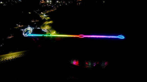 등기산스카이워크는 밤이 되면 또 다른 모습으로 변신한다. 경계를 알 수 없는 밤바다와 밤하늘 향해 뻗은 스카이워크의 조명이 켜지면 색다른 매력을 느낄 수 있다.