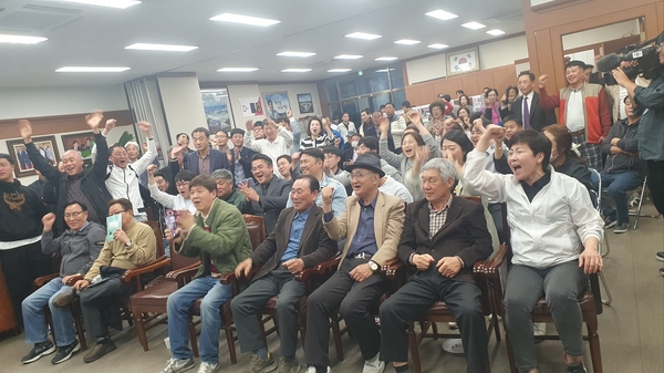 이날 오후 10시 30분 현재 개표률이 40%에 근접하면서 조 후보의 득표률이 최 후보 득표율을 따라잡는 결과가 나오자 조 후보 사무실 분위기는 열광의 도가니가 됐다가 또다시 지는 상황이 되자 일순간에 조용해 지는 등 시간대별로 희비가 극명하게 엇갈렸다.