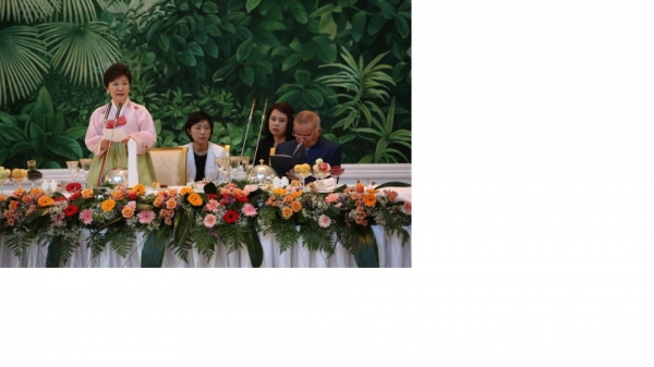 ▲박근혜 대통령이 17일 오후(현지시간) 우즈베키스탄 대통령궁 영빈관에서 열린 국빈만찬에서 카리모프 대통령의 만찬사에 답사를 하고 있다. |