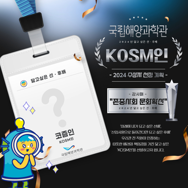 ‘닮고 싶은 KOSM인’은 2024년 근무한 직원을 대상으로 하반기 중 전 직원 투표를 통해 선정될 예정이며, 선발된 직원의 우수 역량을 대내·외로 확산하기 위해 공감·소통 교육, 계층별 리더십 교육 등을 심도있게 운영할 계획이다.