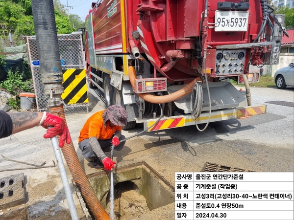 현재 하수도 준설 차량, 물탱크차, 기타차량 등을 투입해 울진읍부터 시행 중이며, 차후 준설 대상 요청이 들어오면 면 단위로 취합하여 수시로 진행할 예정이다.