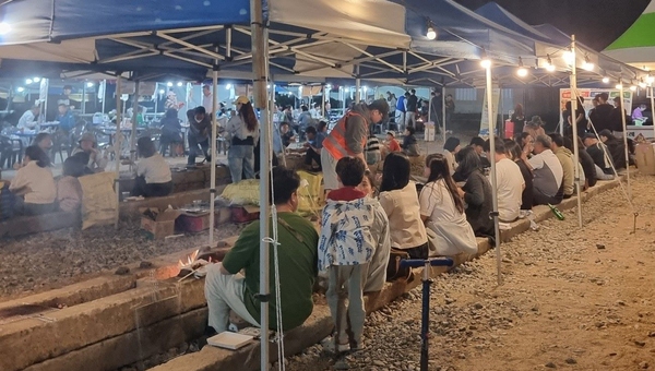 | ▲ 구 안동역 콘크리트 목책 폐기물을 재활용한 \'레일로드 불멍굽멍랜드\'에는 참신한 아이디어가 돋보였고, 늦은 밤까지 축제를 즐기는 시민과 관광객으로 가득했다. 황해득 기자 | ||