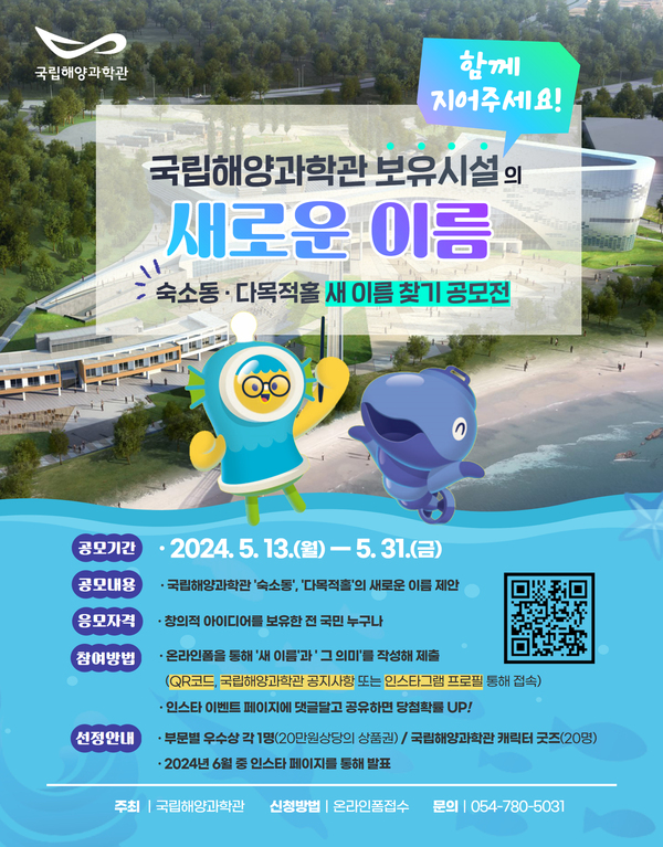 김외철 국립해양과학관장은 “이번 공모전을 통해 기관의 특성이 잘 드러나는 참신하고 다양한 아이디어가 제안되길 바란다”며 “새로운 이름으로 운영될 체류형 교육시설을 통해 앞으로도 다양한 해양과학 실험·실습 및 해양·레저문화를 체험할 수 있는 심화 교육 프로그램을 운영하겠다”고 말했다.