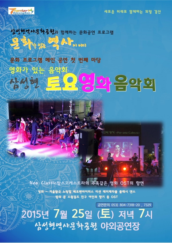 문화 공연 프로그램 첫 번째로 “삼성현 토요 영화 음악회”를 오는 25일 오후 7시부터 공연한다.