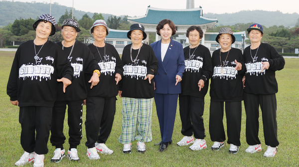 호국보훈의 달을 맞아 강정애 국가보훈부 장관이 칠곡할매래퍼 ‘수니와 칠공주’ 할머니들과 랩을 부르며 문화이자 일상의 삶에서 실천하는 보훈의 의미를 강조했다고 22일 밝혔다.