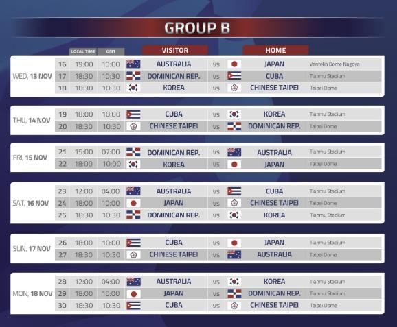 이번 대회는 조별리그 결과에 따라 A조와 B조 상위 2개 팀은 11월 21일부터 23일까지 일본 도쿄돔에서 열리는 슈퍼라운드에 출전하며, 결승전은 같은 장소에서 24일 열린다.