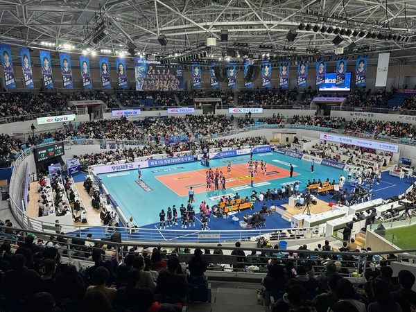 | ▲ 한국도로공사 배구단 시합 장면. 김천시 제공 | ||