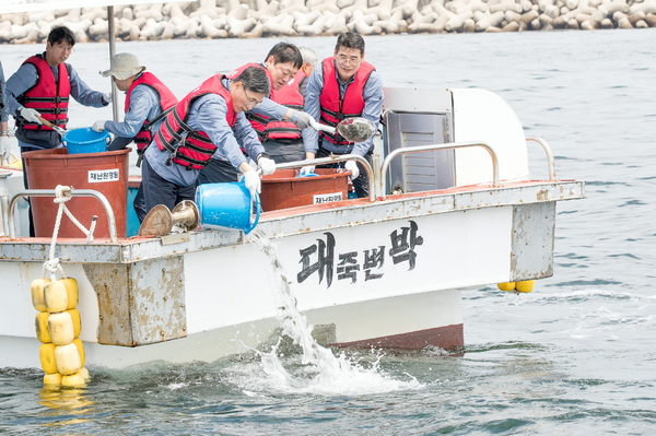 죽변수산업협동조합장과 어촌계협의회장은 “어업 생산량 감소로 어려움을 겪고 있는 어민들에게 도움을 주는 한울본부에 감사하며, 치어․치패가 잘 자라서 만선의 기쁨으로 돌아오기를 바란다” 라고 말했다.