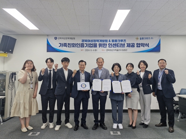 하금숙 경북여성정책개발원장은 “현재 28개사 기관(업)이 경북도 내가족친화인증기업 확대를 위해 인센티브 제공에 적극 동참하고 있다. 울릉크루즈㈜가 가족친화직장문화 확산에 관심을 가지고 가족친화협력기관이 돼 기쁘다. 경북여성정책개발원은 앞으로도 가족친화인증을 유인하도록 실효성 있는 혜택을 제공할 수 있는 협력기관 발굴에 힘써 가족친화경영 확산에 기여하겠다”고 말했다.