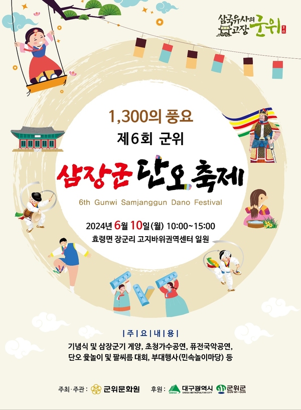 군위군이 이를 복원해 올해 6회째 열리는 삼장군 단오축제는 창포 머리감기 퍼포먼스, 삼장군 화합 줄다리기, 윷놀이, 어르신 팔씨름대회, 마당극 등 다양한 놀이와 체험프로그램, 지역의 예술동아리·전문공연팀 공연, 플리마켓 행사 등을 푸짐하게 담아 펼쳐진다.
