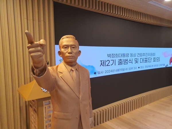 한편, 이날 발대식 연단에는 박정희동상건립추진위원회가 모금을 통해 건립할 동상 축소 모형이 전시돼 눈길을 끌었다.