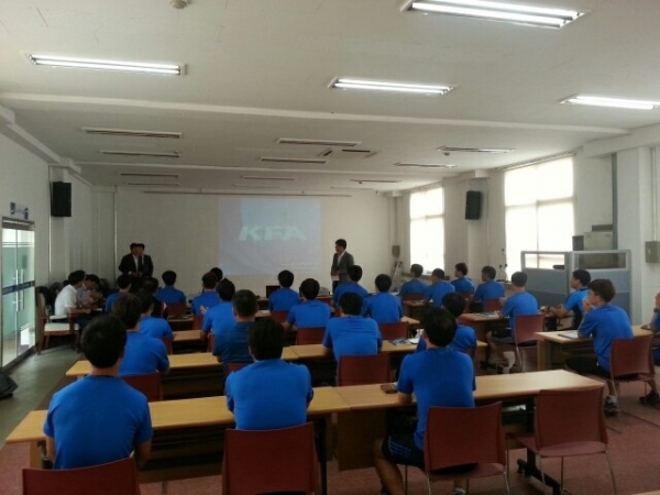 ▲K리그 구단 산하 18세 이하 유소년팀이 참가하는 `2015 K리그 U17&U18 챔피언십` 대회의 성공을 위해 29일 오전 9시 포항시체육회관 3층 대회의실에서 심판40여명이 참석한 가운데 심판강습회가 열렸다. |