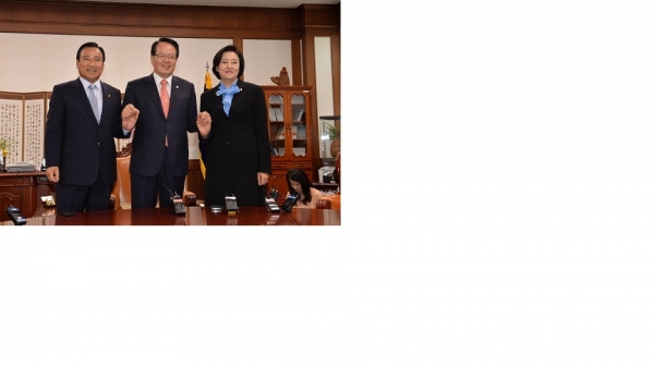 ▲정의화 국회의장은 지난 12일 국회 의장집무실에서 새누리당 이완구, 새정치민주연합 박영선 원내대표와 3자 회동을 갖고 후반기 원 구성 및 쟁점법안처리 등에 대해 의견을 교환했다.