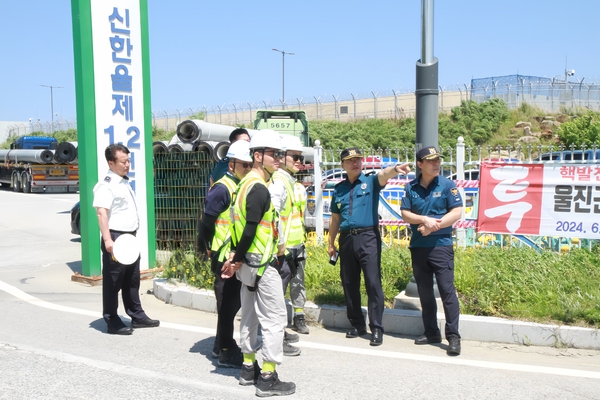 울진경찰서는 지난 5일 울진군 북면 덕천리에 있는 덕천교차로를 방문하여 여름철 집중호우 대비 관계기관 합동‘집중호우 대비 상습 침수지역 교통안전 상 위험요인 점검’을 실시했다. 기후변화에 따른 국지적ㆍ집중적인 극한 기상현상의 빈발이 예상, 도로침수 등으로 인한 긴급한 교통안전 상 위험에 대비하기 위해 지역 내 장마철 상습 침수지역으로 지정된 덕천교차로 일대를 관계기관 등과 합동점검을 펼쳤다. 정세윤 서장은 ‘여름철 집중호우에 대비해 안전한 재난관리 대책 수립에 최선을 다할 것’을 당부했다.