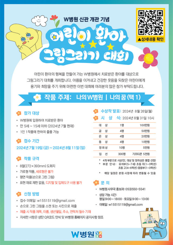 이번 대회는 2008년 9월 개원 이후 W병원에서 합지증, 다지증, 소아골절 등으로 치료받은 어린이 환아(2024년 7월 현재, 만 5세~15세)를 대상으로 한다.