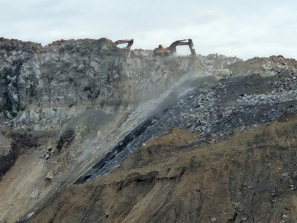 | ▲안전조치없이 절벽에서 작업하는 대형 건설장비.김문도 기자 | ||