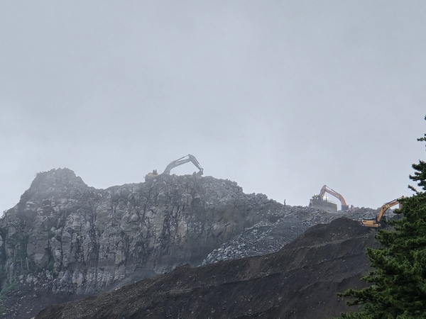 게다가 가두봉 정상에서 굴착작업을 하고 있는 대형건설장비(굴삭기, 불도저) 조종사도 발주처와 시공사의 공기 단축 압박과 공사비 절감 강요로 위험에 내몰리고 있다는 지적이다.