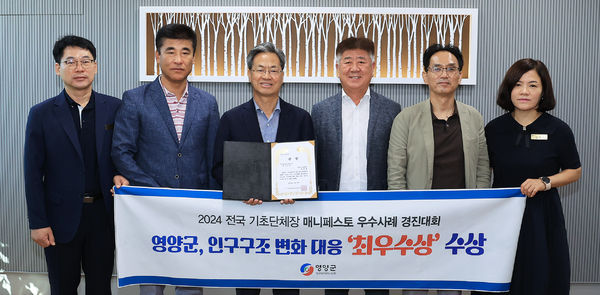 영양군은 지난달 31일 인제대학교 김해 캠퍼스에서 개최된 ‘제14회 2024 전국 기초단체장 매니페스토 우수사례 경진대회’에서 인구구조 변화 대응 분야 ‘최우수상’ 수상의 영예를 안았다.