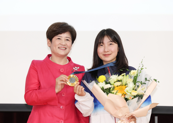 이날 환영회는 강은희 대구교육감을 비롯해 선수 부모, 지도 교사, 코치, 체육고 교직원 및 학생, 교육청 관계자 등 250여명이 참석해 하계올림픽에서 우리나라 100번째 금메달을 획득한 반효진 선수를 축하하고 더욱 빛날 선수의 미래를 위해 응원의 메시지를 전달했다.