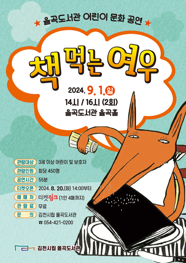 | ▲ 책먹는 여우 공연 포스터. 김천시립도서관 제공 | ||