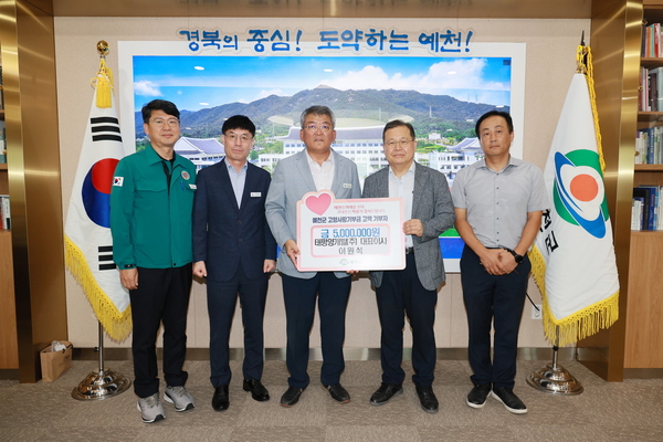 태평양개발㈜ 이원석 대표가 500만 원의 기부금을 김학동군수를 통해 29일 예천군에 전달 했다.이원석 대표이사는 예천군을 제2의 고향으로 여겨 꾸준히 관심을 가져왔다. 김학동 군수는 “예천군을 제2의 고향으로 생각하고 기부해주신 모든 분께 진심으로 감사드린다”고 말했다.
