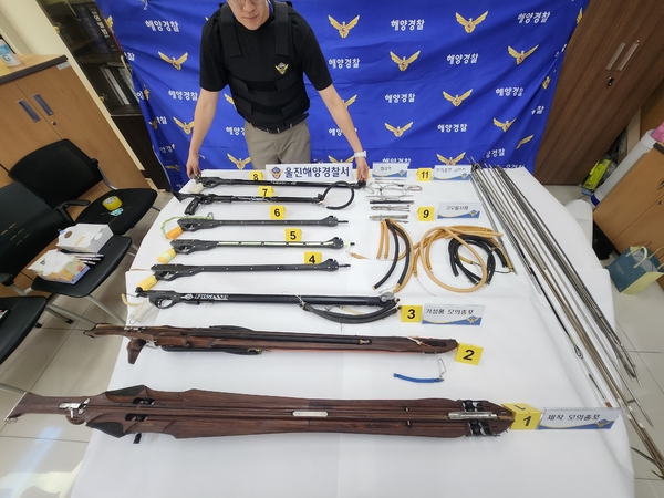 울진해경에 따르면 지난 3월경 불법 잠수장비를 착용하고 바다에 들어가 전복, 해삼 B씨와 C씨(남, 40대)를 입건해 수사하던 중 법원에서 발부 받은 압수수색영장을 집행해 자택 등에 보관되어 있는 모의총포를 발견했다. 해경은 이들을 추궁한 끝에 모의총포를 판매한 A씨에 대한 정보를 입수했다.