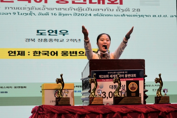 제28회 세계한국어웅변대회가 최근 라오스 국립문화예술회관에서 열린 가운데 경상북도 대표연사들이 최우수상을 받는 영예를 안았다