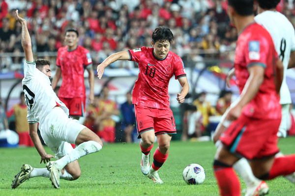 5일 서울 상암 월드컵경기장에서 펼쳐진 2026 북중미월드컵 아시아 3차 예선 B조 1차전 경기에서 대한민국은 팔레스타인과 0대 0 무승부를 기록했다.