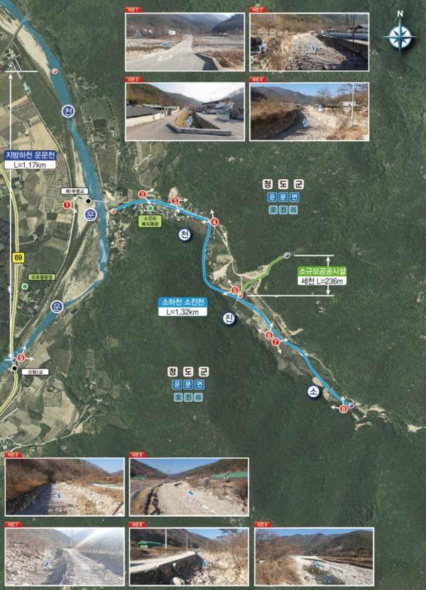 군에 따르면 소진지구 풍수해생활권 종합정비사업은 운문천과 소진천 시설노후, 규격미달 제방시설로 집중호우와 태풍 내습 시 월류로 인한 침수피해가 지속적으로 발생하는 지역이다.