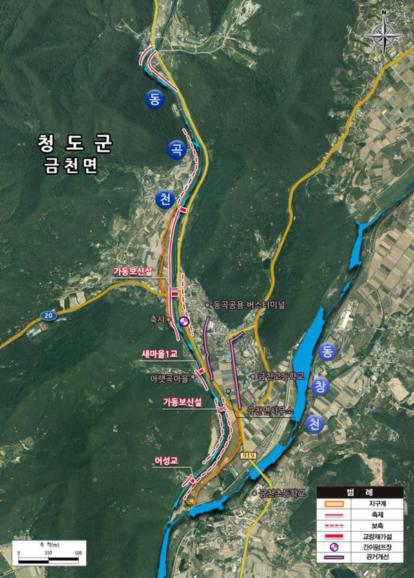 동곡지구 정비사업은 총사업비 372억원(국비 186억, 도비 56억, 군비 130억)이며, 하천정비 4.71㎞, 교량 4개소, 우수관거 개선 등을 시행할 예정이다.